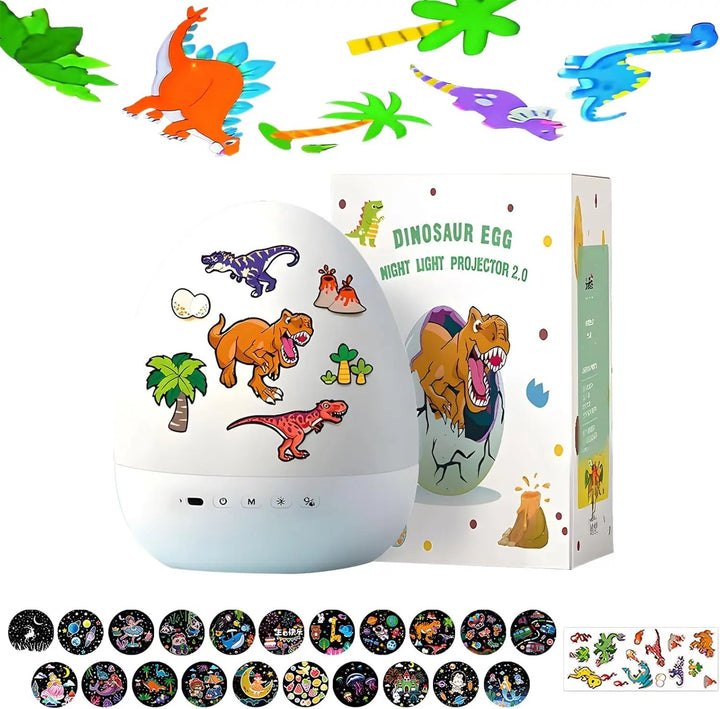 No more boring nights - this dinosaur egg projector fills your child's room with glowing dinosaurs, stars and jungle scenes