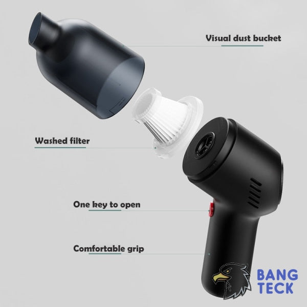 The car cleaner with a suction force of more than 8000 Pa can meet your daily cleaning needs. The cordless hand-held cleaner has a built-in lithium battery that can be fully charged in a few hours each time and work for 40min! With a premium filter to lock in the dust. it is washable and reusable. effectively removing garbage residue from producing a peculiar smell.