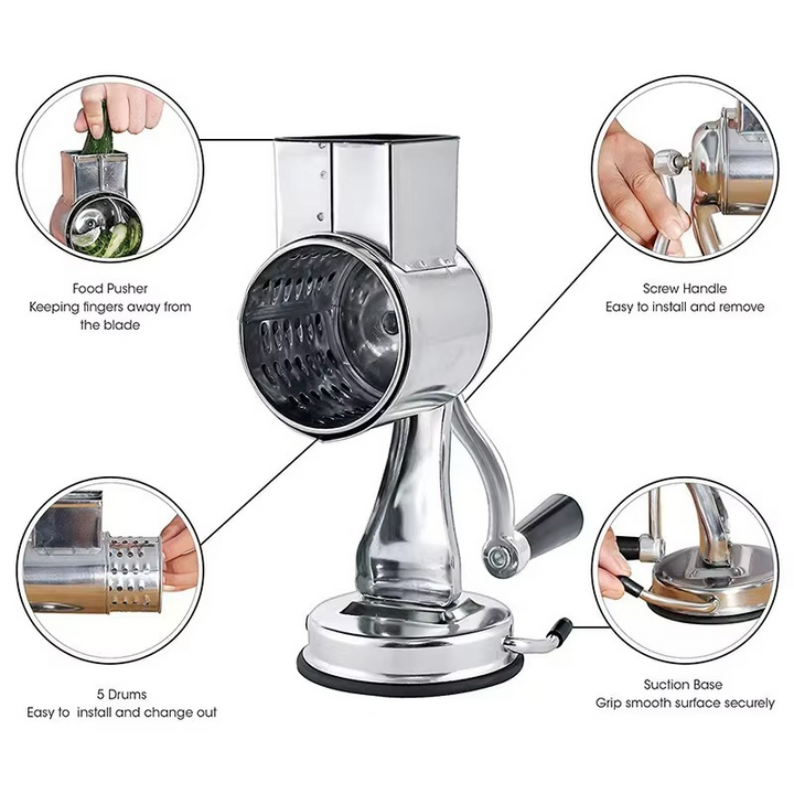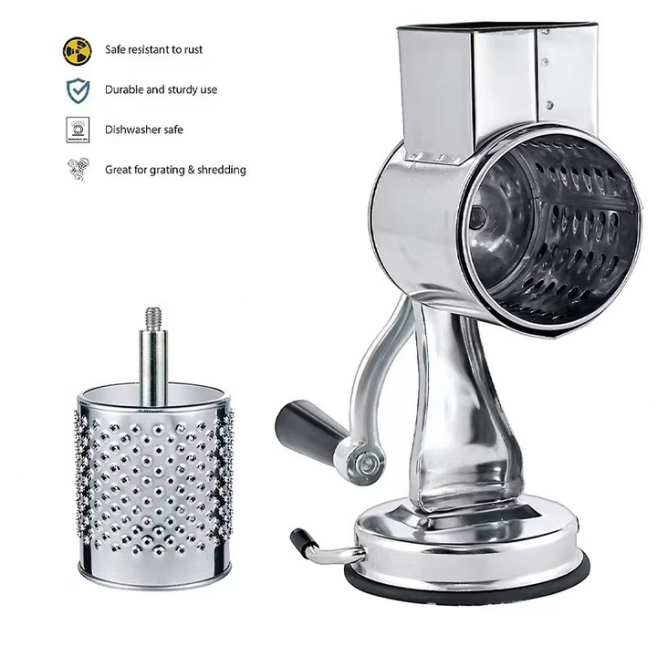 Made with stainless steel and food-grade materials, this rotary grater is built for long-term performance, helping you create fresh meals safely and efficiently at home.