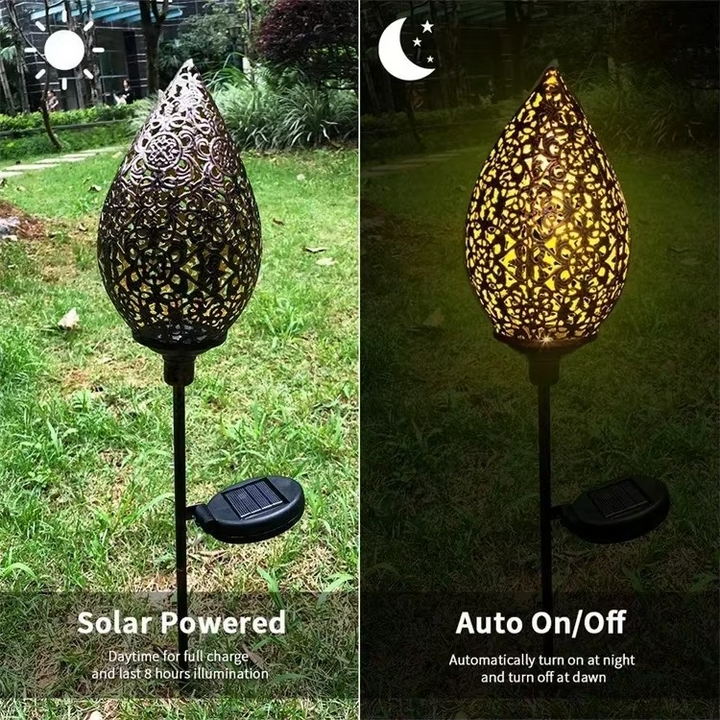 Designed to enhance aesthetics and visibility, this solar-powered light turns on automatically at dusk, providing a charming patterned light to guide your steps safely.