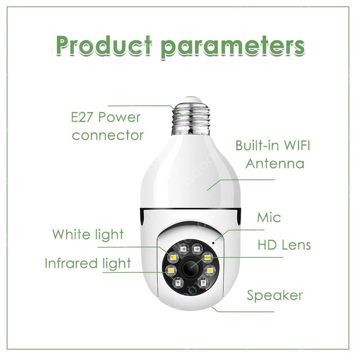 This camera can be installed using a normal E27 bulb base (110V~240V), NO MORE ADDITIONAL INSTALLATION STEPS. Then you just need to connect the camera system to the router and open the app to control the camera to achieve 360-degree viewing without blind spots.